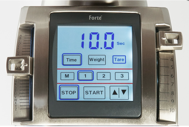 A unique feature of the Forté–AP is the ability to convert a weight preset into a timed value that is accurate within plus or minus .5 grams of the set point. This allows for weight-oriented dosing for espresso.