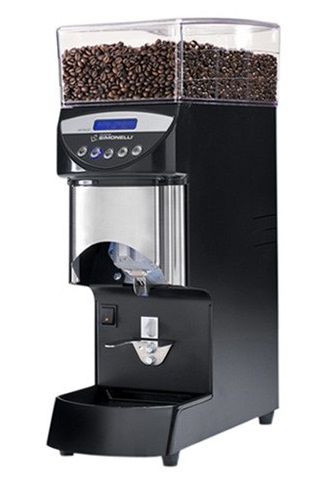 The Mythos Basic grinder has a “grind on demand” system that brings out all the aroma and flavor out of a coffee bean, and is considered one of the best espresso grinders available. Mythos has up to 3 different programmable doses for single, double and triple shots with manual override. With its long-life titanium/steel alloy grinding discs and powerful 800 watt motor it is precise, fast and reliable. Thanks to the micrometric grinding adjustment, it is ideal for those who want to serve the best espresso possible. In this Basic model, the low motor speed of around 400 RPM keeps the temperature of the coffee grounds low, which protects the aroma and taste. Only available in black and without built-in tamper.
